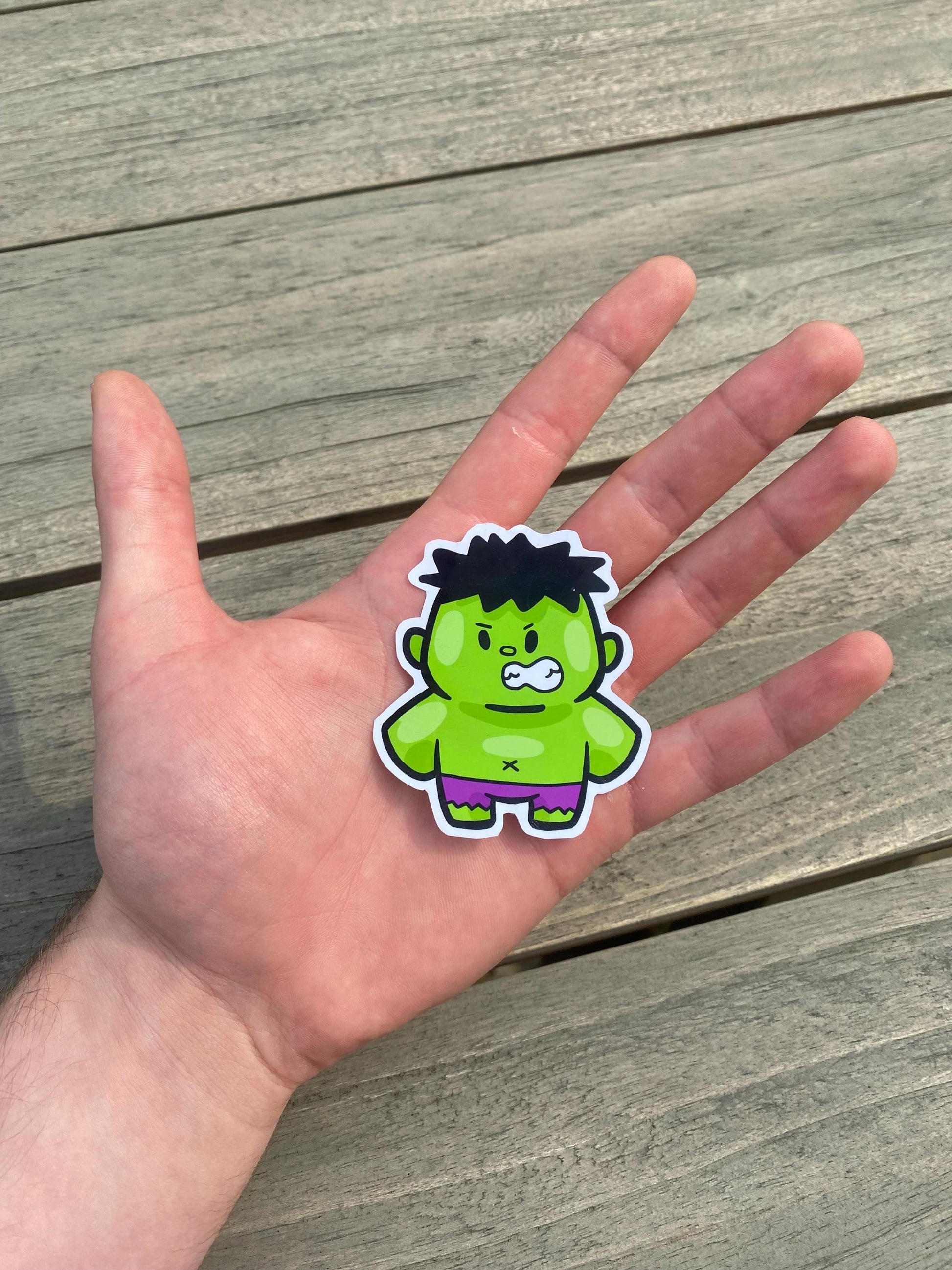 6 Avengers Comic Book Sticker designs (Hulk, Iron Man, Captain America, Thor, Black Widow, Hawkeye) Hand Drawn Digitally and Printed onto glossy sticker paper. Designs are 100% unique and no use of AI. Available to buy single sticker or full set of 6. Approximately 60mm x 60mm, view second image for a size comparison with my hand.